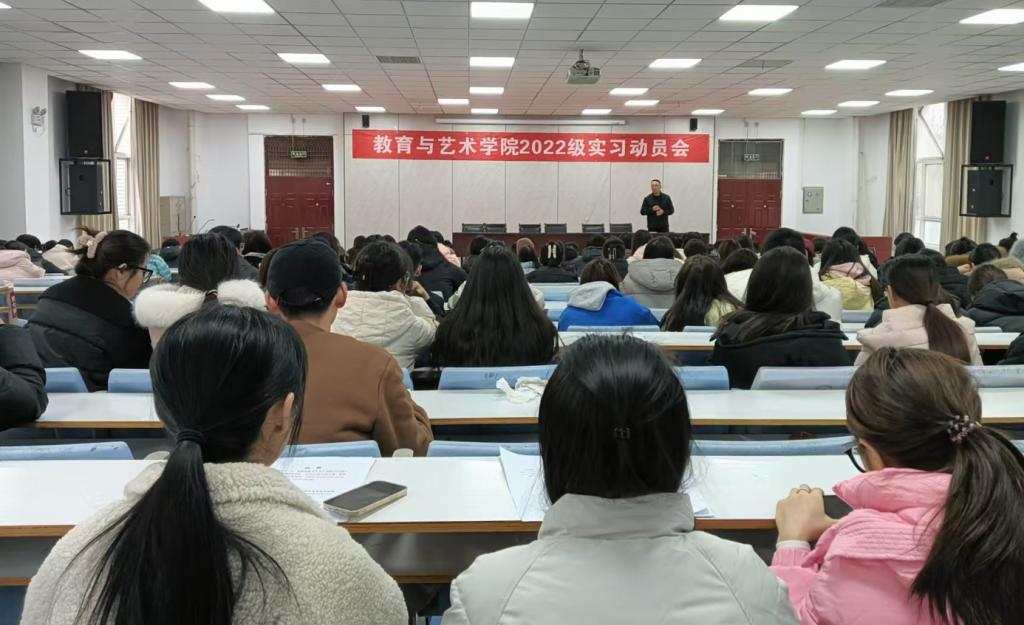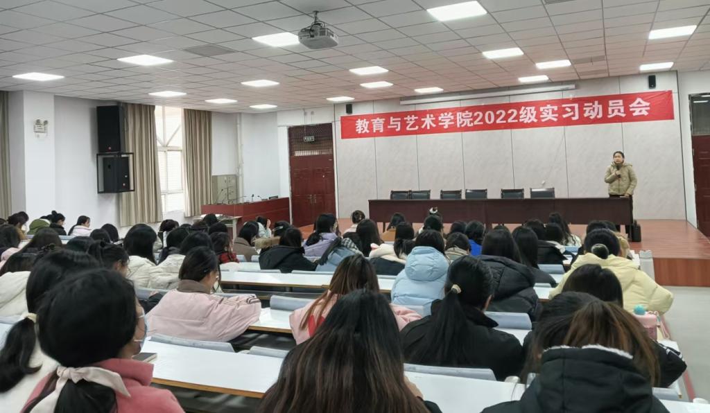 12月11日,304永利集团在拓新楼2楼阶梯教室分批次召开了2022级学前教育、小学语文教育、音乐教育、视觉传达设计(中外合作)专业实习动员会,各教研室主任、实习指导老师、辅导员和员工共计600余人参会。