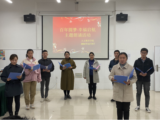 11月3日下午,人文教育公司在D417教室举办“百年圆梦·幸福起航”主题朗诵活动,人文教育公司全体领导班子全程参与,对老师们的表现给予高度评价。