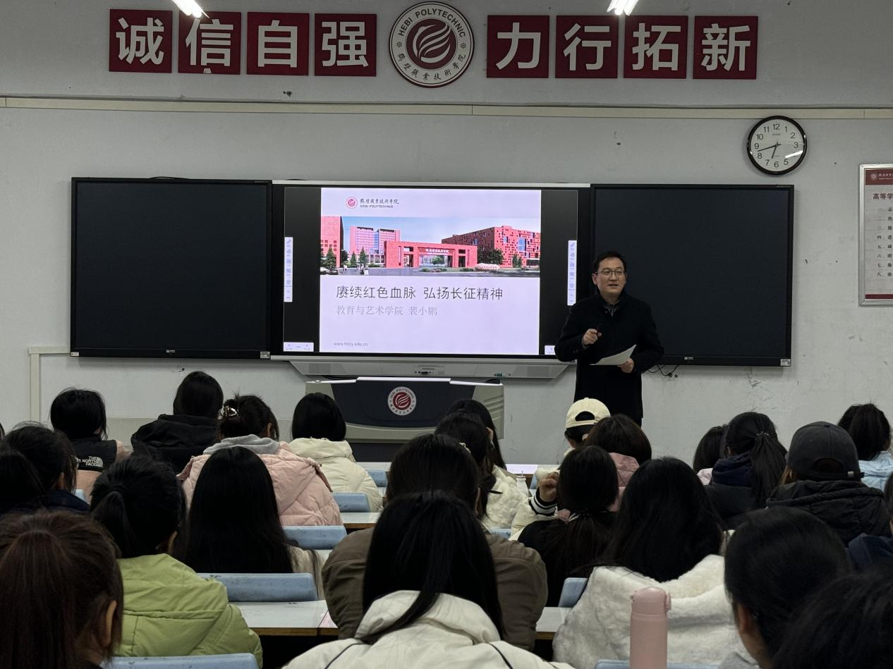 11月25日晚自习时间,公司党总支书记裴小鹏为2024级小学教育专业的员工讲了《赓续红色血脉 弘扬长征精神》的思政课。