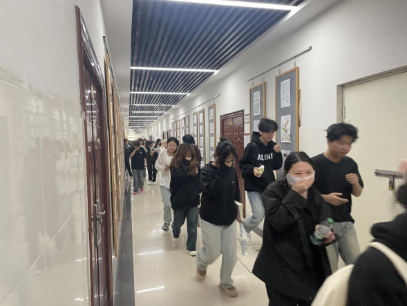 演练前期,经过现场考察,制定了详细的演练方案,以图文并茂的形式重点描述了最优的逃生路线,并提前3天,通过辅导员例会、教研室主任会、微信群等方式告知全体师生,演练当天,为确保安全,每层楼安排1名实验管理员和2名疏散员,配合上课师生进行演练。当天上午11:20哨声响起后,师生们反应迅速,动作规范,1至6楼师生分东西两侧疏散,通过连廊、楼梯预设路线快速撤离安全抵达集合点,任课教师随班级最后一名同学快速撤离,确保无人员遗漏,演练全程不到5分钟,实现了快速、安全、零事故的疏散目标。