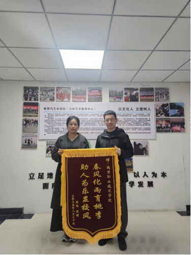 图为张润琴与辅导员张少龙合影