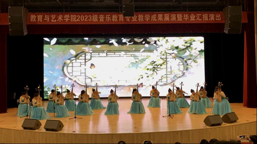 本次汇演共有15个节目。演出以舞蹈《第一天》的活力展演开场,《九儿》《石榴花开》以饱满情感打动人心。器乐演奏精彩纷呈,二胡《赛马》激昂奔放,琵琶《茉莉花》清雅婉转,吉他、长笛、葫芦丝等表演各具特色。声乐板块创意十足,创作歌曲联唱、古诗词歌曲联唱韵味悠长,独唱《那年盛夏花又开》温情动人。同学们通过民族舞、现代舞、器乐演奏及声乐表演等多种形式,全面展示了扎实的专业素养与艺术表现力。