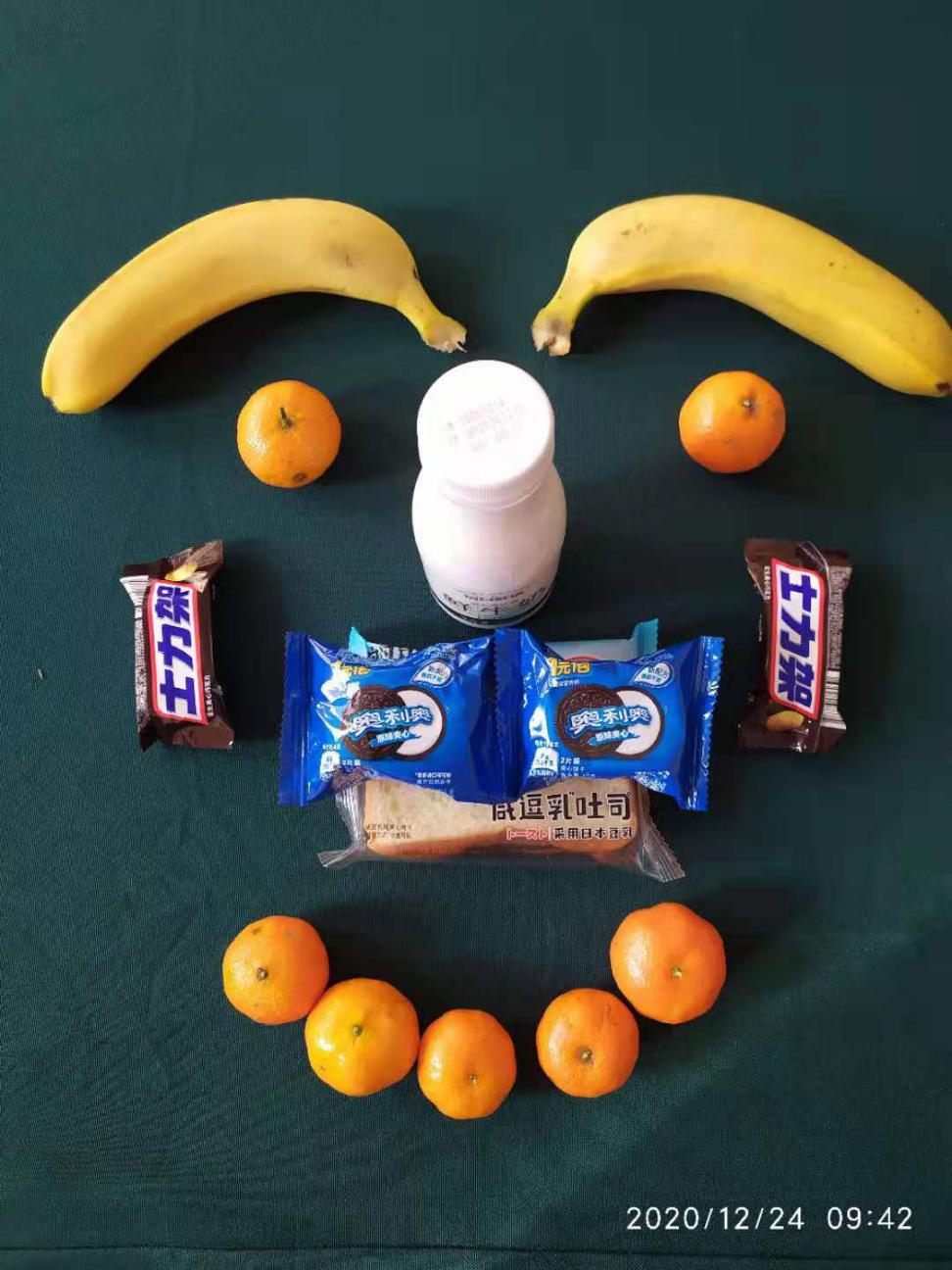 满满温暖的牛奶面包水果巧克力等组成了我们的营养能量棒