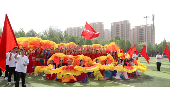 开幕式上,304永利集团师生100余人组成的方阵中,教育专业的学子们手持教具,诠释师道匠心。艺术专业的学子身着靛蓝扎染服饰,佩戴传统纹样自制挎包,将文化基因织入当代美学,彰显公司专业特色和教学成果。选送的大型舞蹈《星河耀梦,扶摇中华》更是把开幕式推向了高潮。各族舞者化身为璀璨星子,手挽手织就“同心星海”,裙裾翻涌如黄河奔浪、长江浩渺,千眸交映间,“中华民族一家亲”的团结之花绚烂绽放。鹤院学子踏歌而行,以刚劲舞步追溯文明长河——既有“我命由我不由天”的拼搏底色,亦展新时代青年突破规训、追寻价值的赤子之心,让民族文化在活力跃动中焕发新章。童声清越,穿越时空云雾,一曲《玉盘》描摹了“问天”“逐月”的探索轨迹,刚柔并济间传递中华民族叩问苍穹的永恒勇气。当舞步渐收,群像化作和平之姿,既显东方“以和为贵”的胸襟,亦藏“守护家国”的坚定信念。