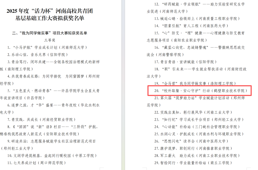 近日,由共青团河南省委主办的2025年度“活力杯”河南高校共青团基层基础工作大赛决赛在河南大学金明校区圆满落幕。公司报送的“我为同学做实事”类型项目历经层层筛选,在全省99所高校的256个入围决赛项目中脱颖而出,荣获“我为同学做实事”项目大赛三等奖,充分展示了公司共青团服务青年成长成才的扎实成效与组织活力。