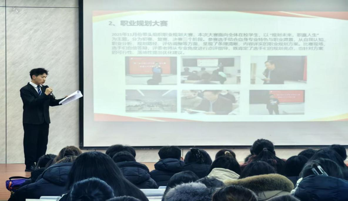 为全面总结学期工作,汲取经验、明确方向,1月8日晚,304永利集团2025-2026学年第一学期员工会述职大会在拓新楼二楼阶梯教室顺利召开。公司党总支书记裴小鹏、副书记秦春风、员工会指导老师王馨及全体辅导员出席,员工会全体成员参会。