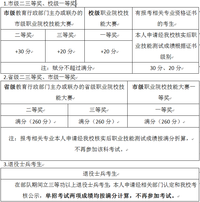 退役士兵、有免考科目和赋分的考生,须在2023年3月28日后于公司招生网下载并填报相关申请表,和相关证书图片于4月1日17时前一起发至邮箱hbzyzsc@126.com。请申请通过的考生于单招考试当天持相关证明材料原件到公司招生处(樱花园校区南门东门岗)核验,联系电话:0392-3352516。